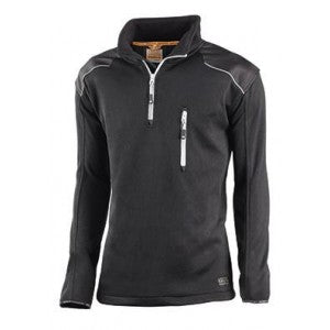 Fecho de correr até ao peito e bolso superior também com fecho de correr.