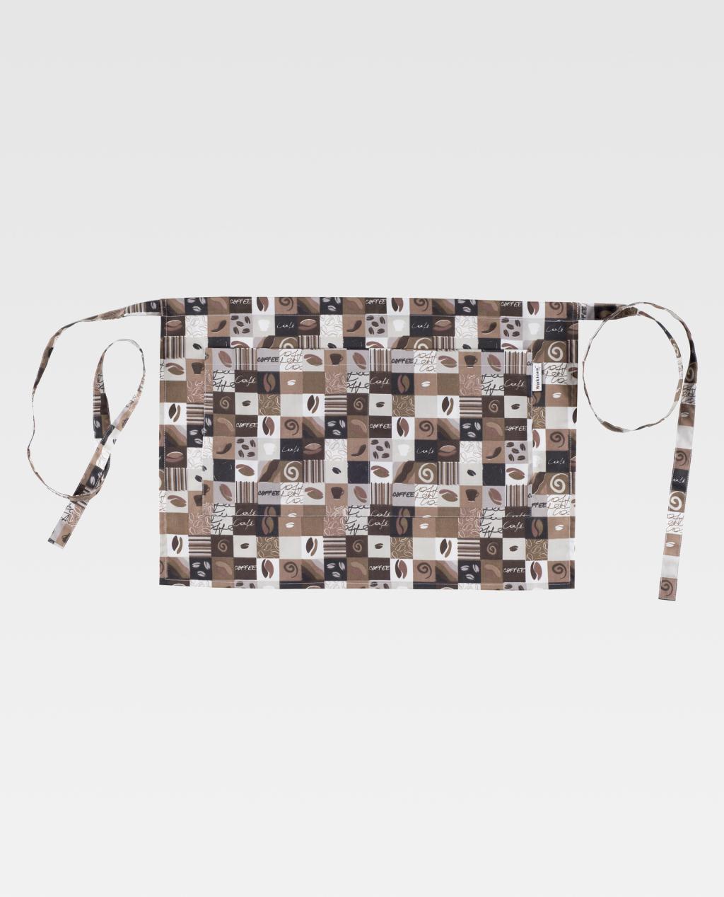 Avental francês curto impresso. Um bolso central compartimentado. Cintas para ajustar na cintura. Acabado anti-nódas. 50X35 cm.