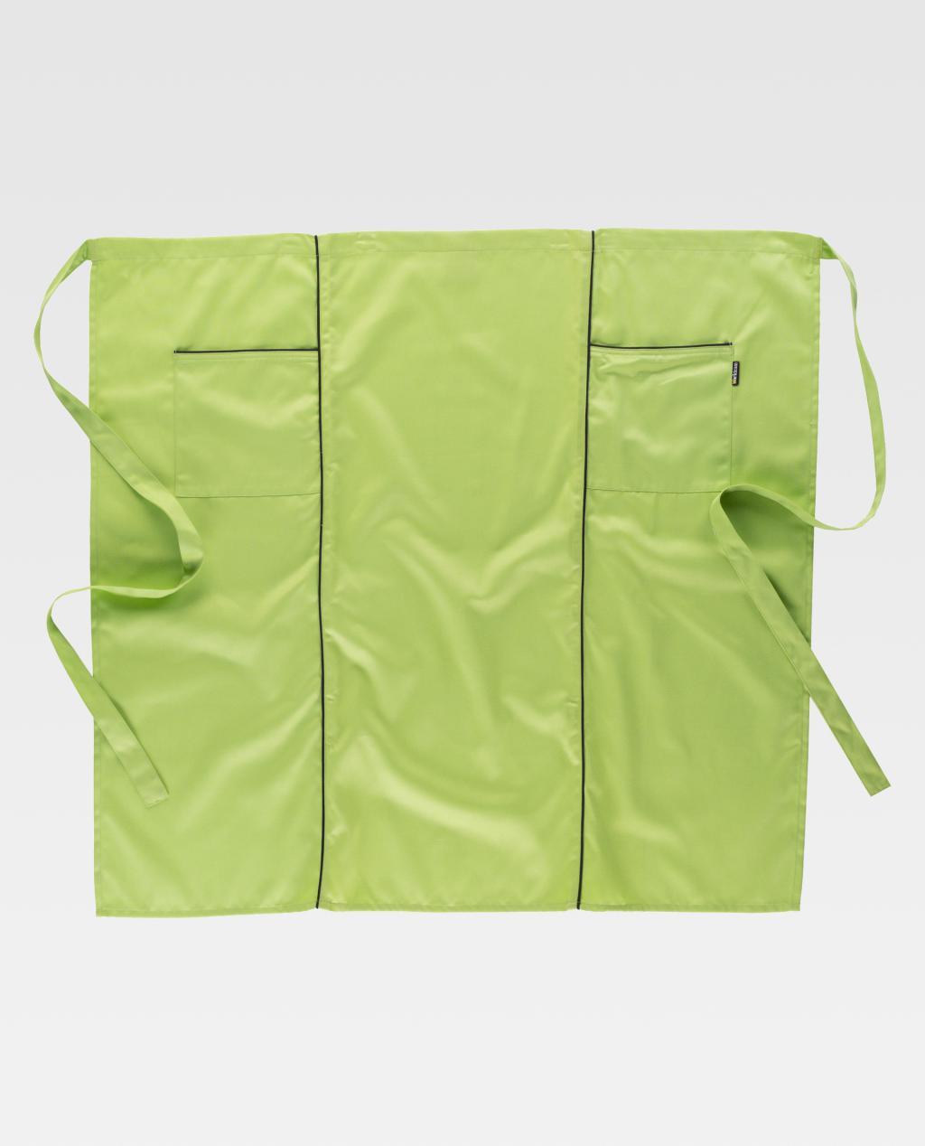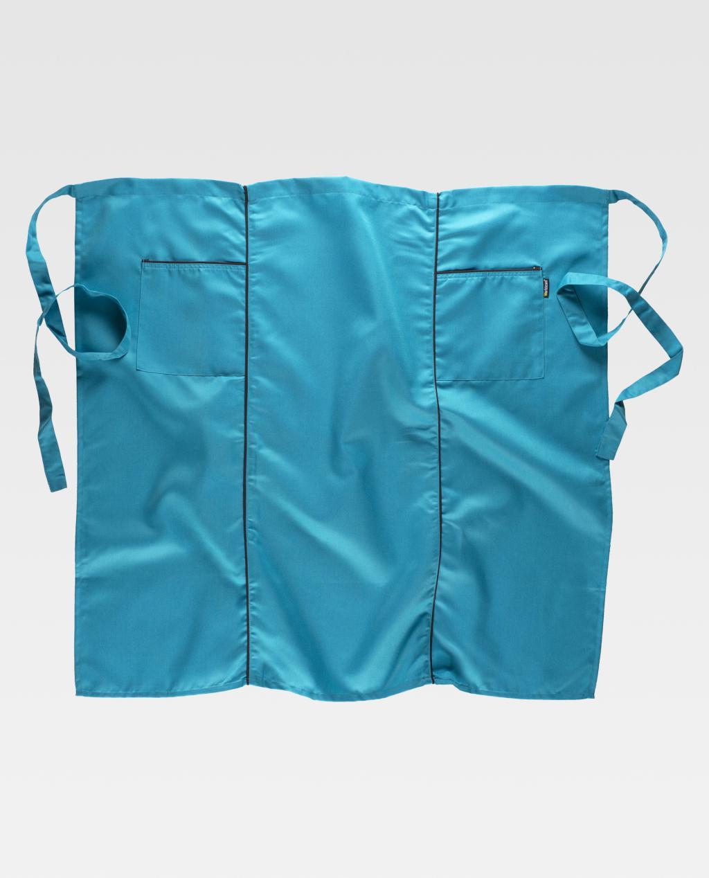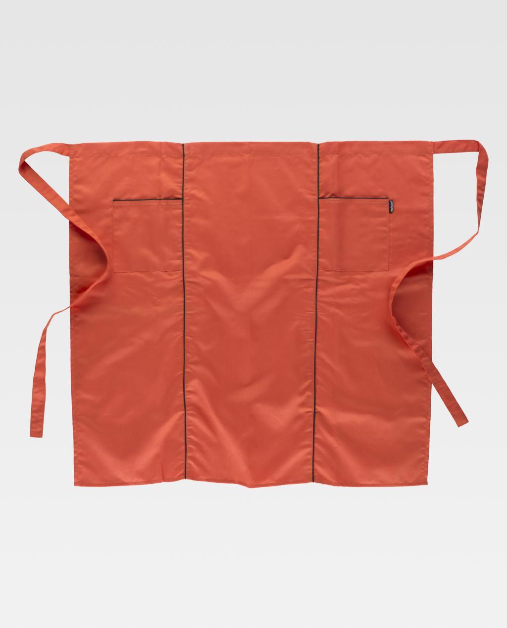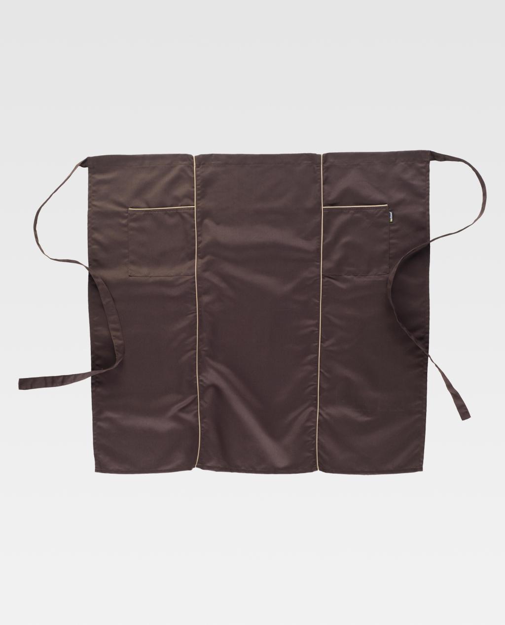 Avental francês extra-longo combinado. Dois bolsos laterais e cortes decorativos acabados com debruns em contraste. Cintas para ajustar na cintura. 90X85 cm.