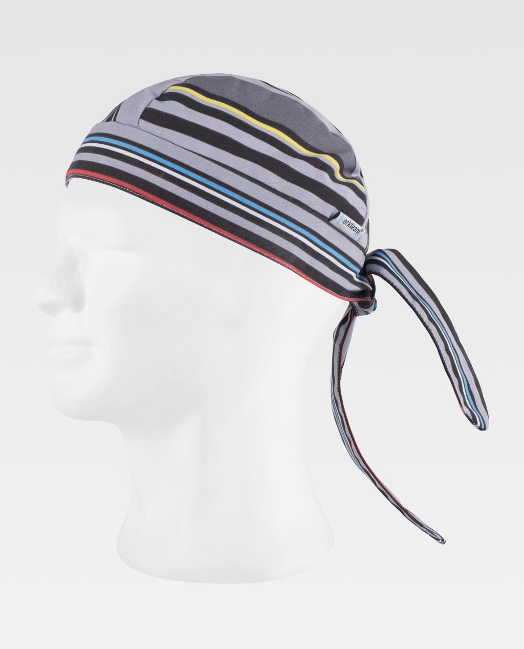 Bandana impressa acabada com fita grossa para ajustar na nuca. Acabado anti-nódoas.