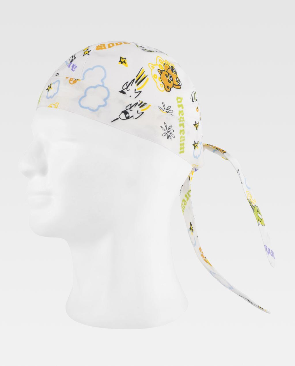 Bandana com impresso de desenhos crianças e acabado anti-nódoas. Acabada com fita grossa para ajustar na nuca.