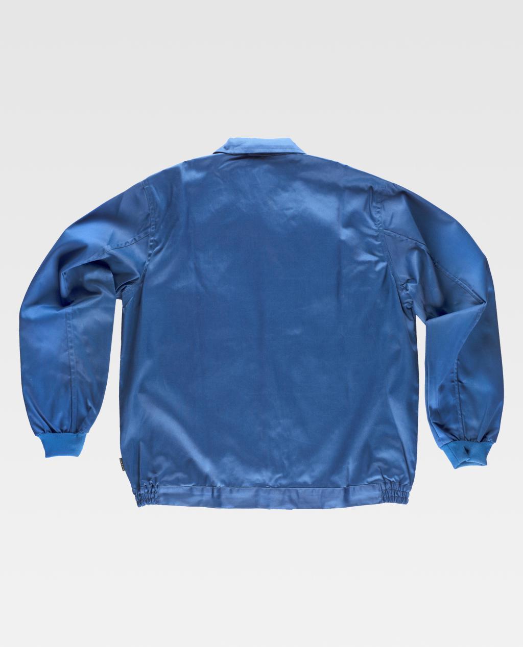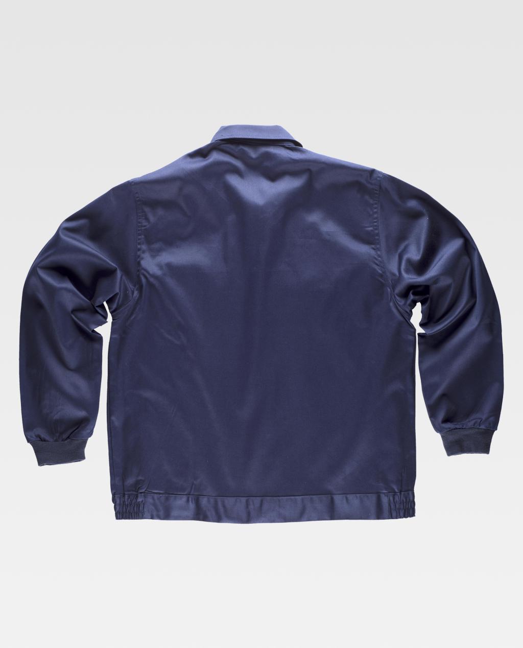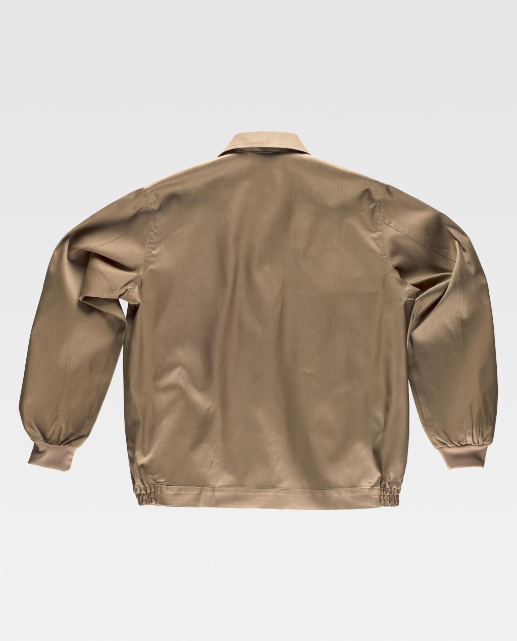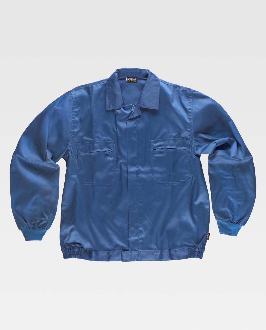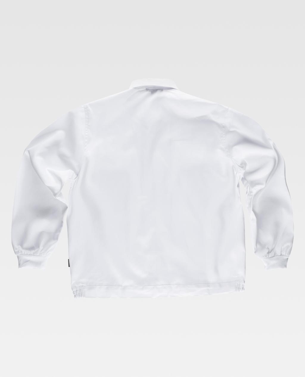 Blusão com gola tipo camiseiro e fecho de correr de náilon oculto. Dois bolsos no peito de chapa com fecho de correr de náilon. Punho elástico. Fecho de velcro na cintura e elástico nos laterais.