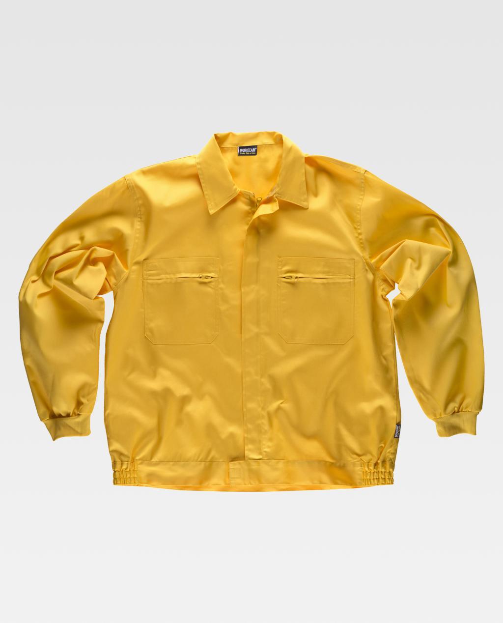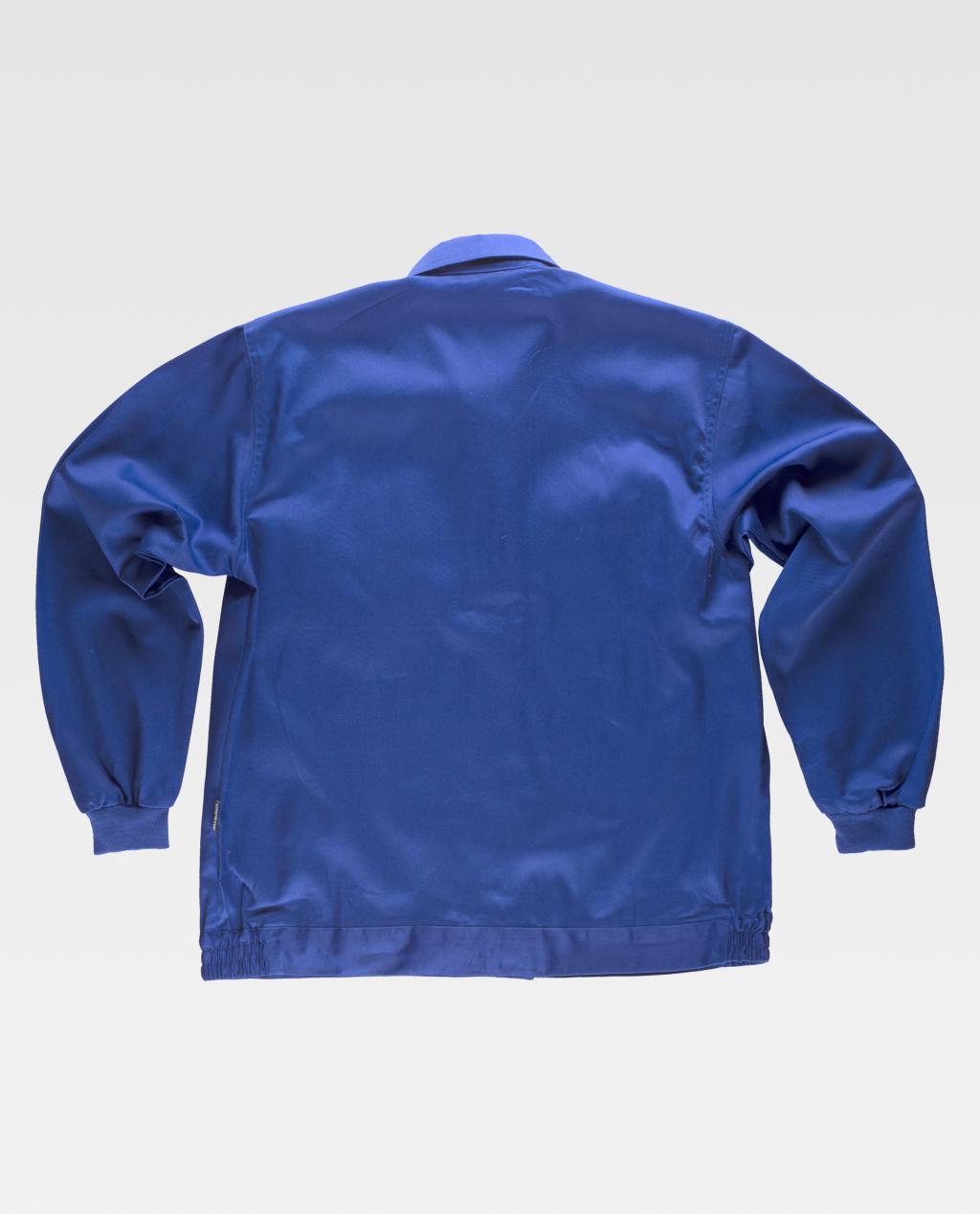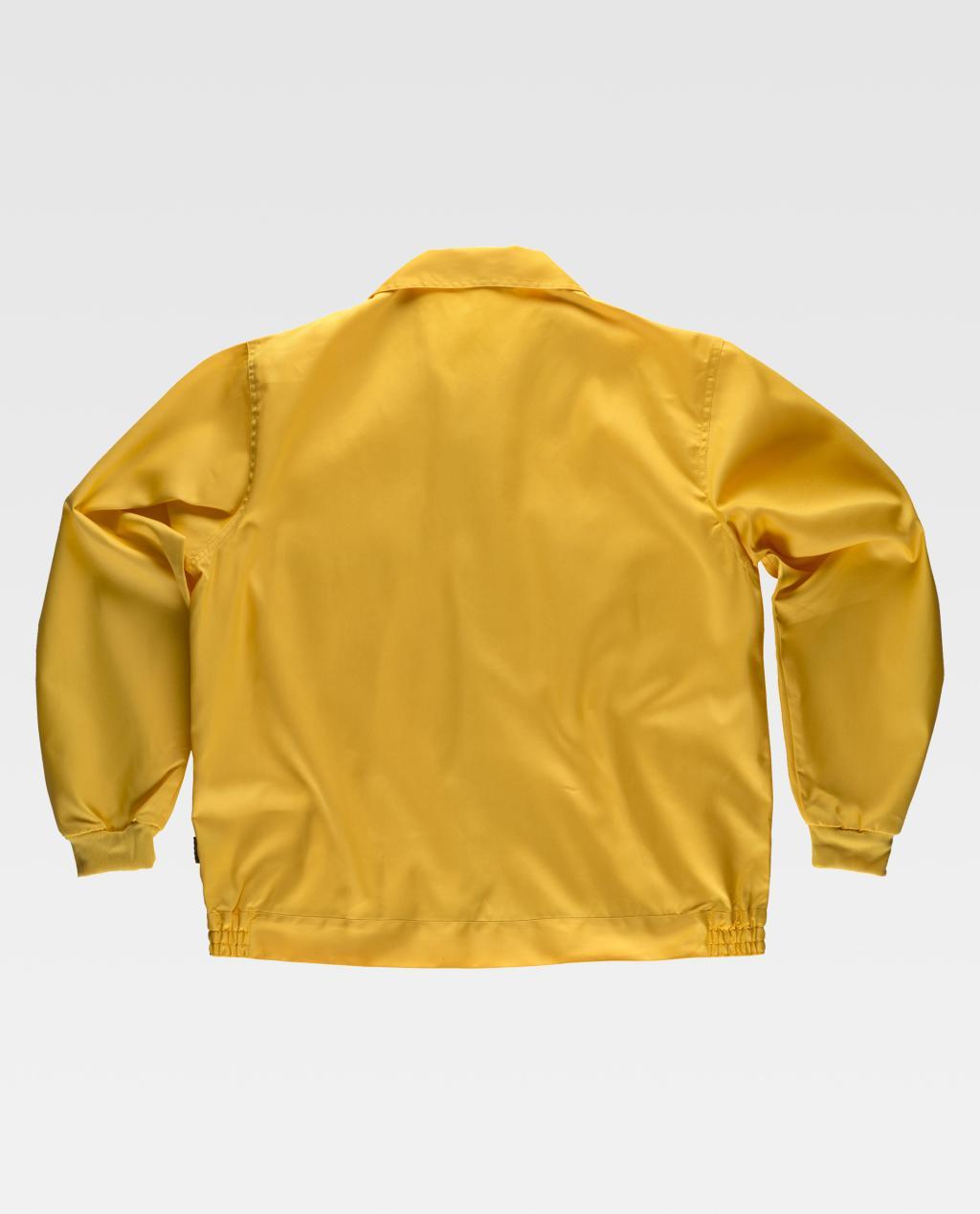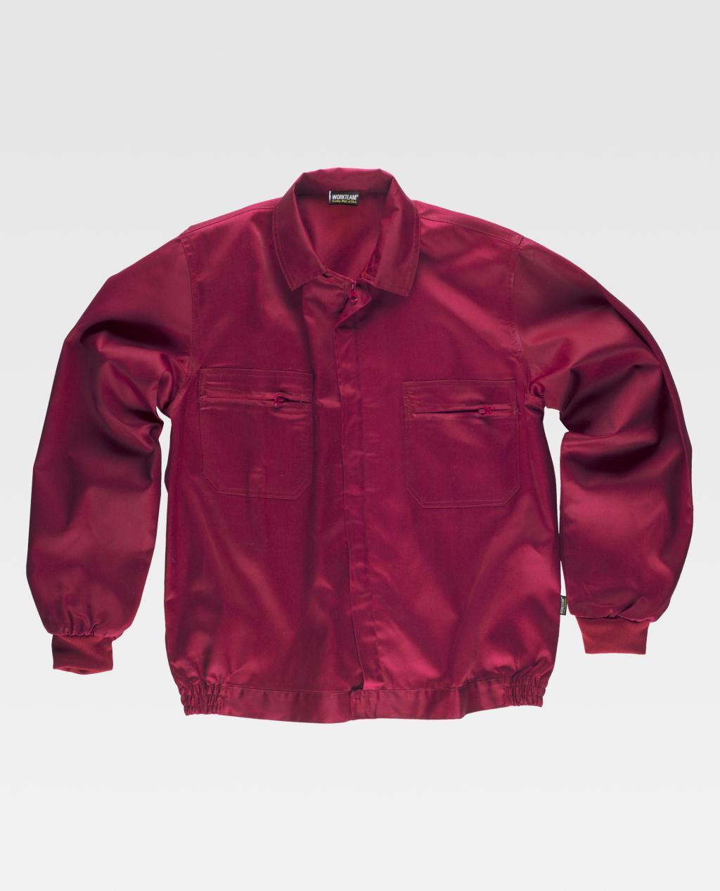 Blusão com gola tipo camiseiro e fecho de correr de náilon oculto. Dois bolsos no peito de chapa com fecho de correr de náilon. Punho elástico. Fecho de velcro na cintura e elástico nos laterais.