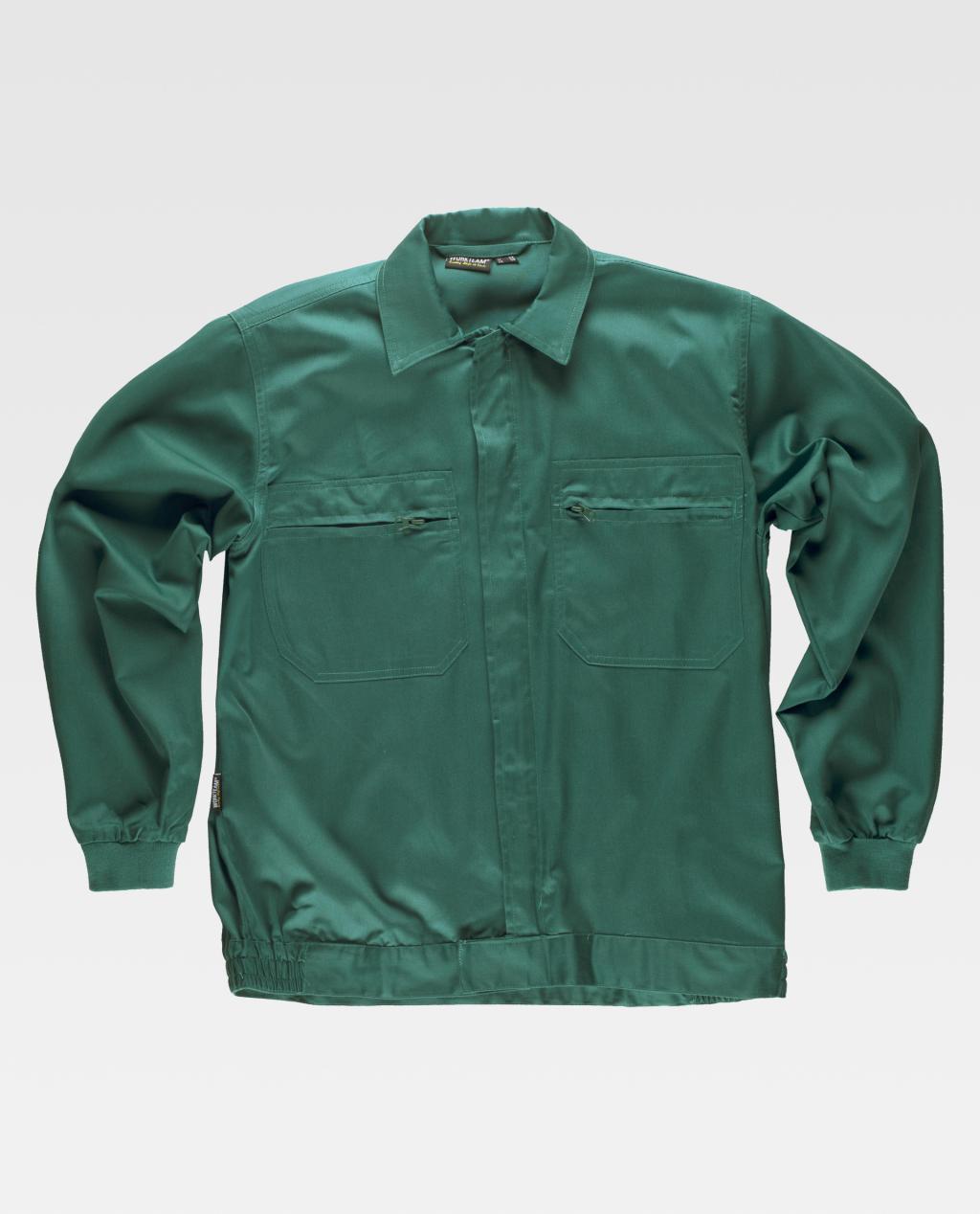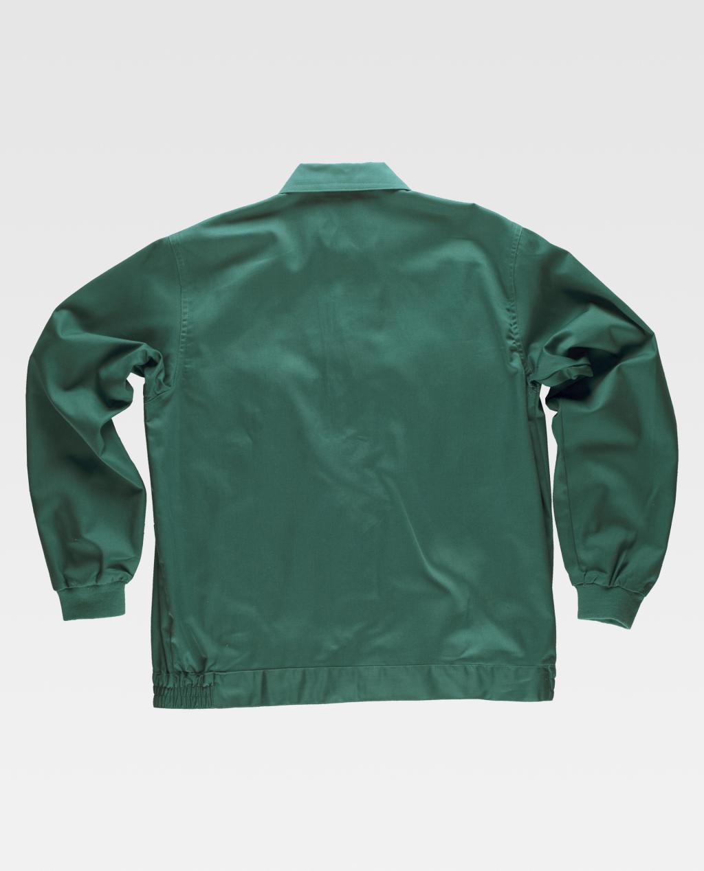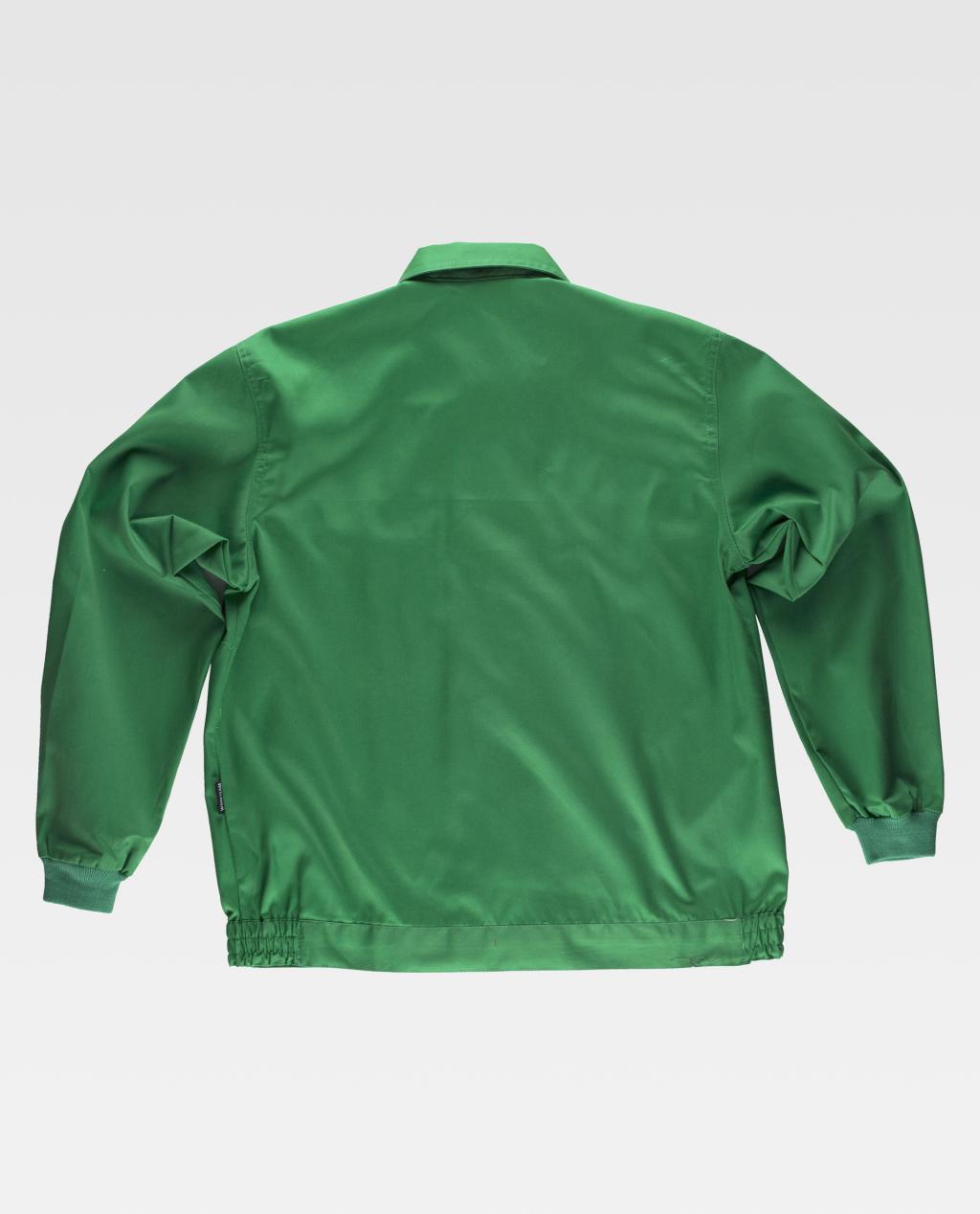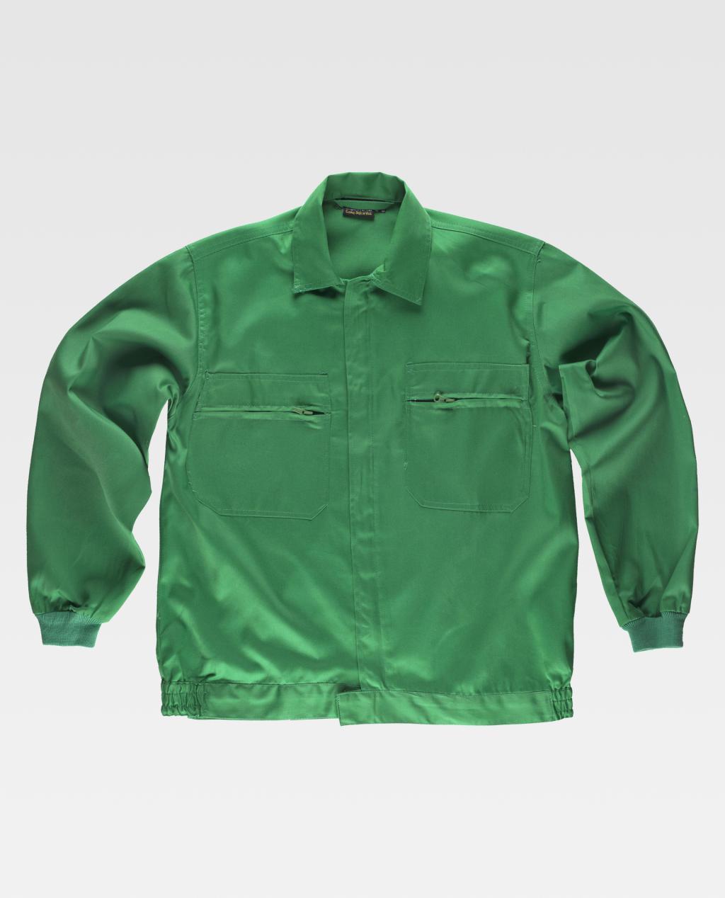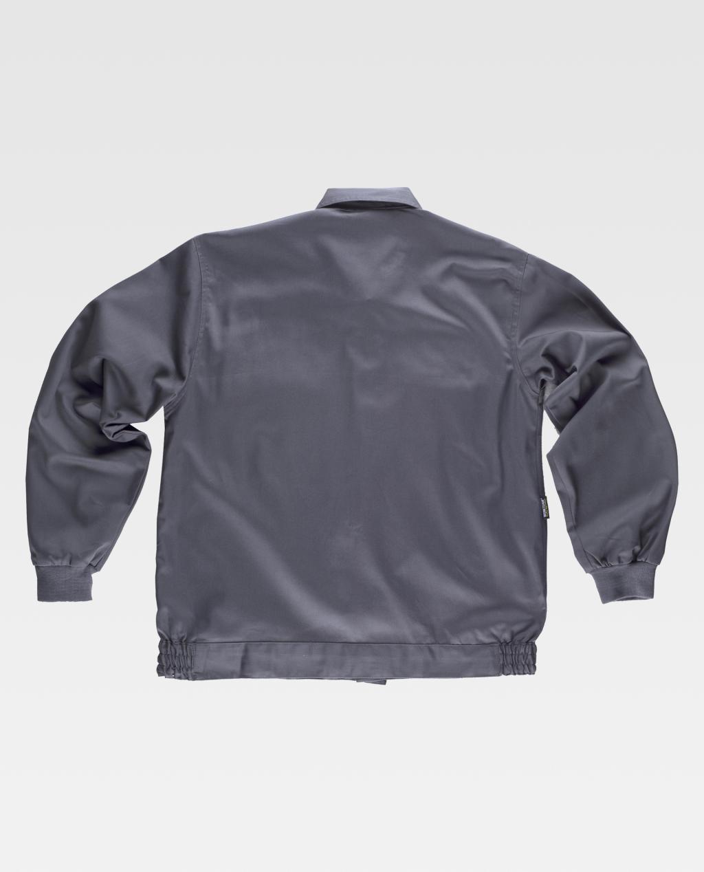 Blusão com gola tipo camiseiro e fecho de correr de náilon oculto. Dois bolsos no peito de chapa com fecho de correr de náilon. Punho elástico. Fecho de velcro na cintura e elástico nos laterais.
