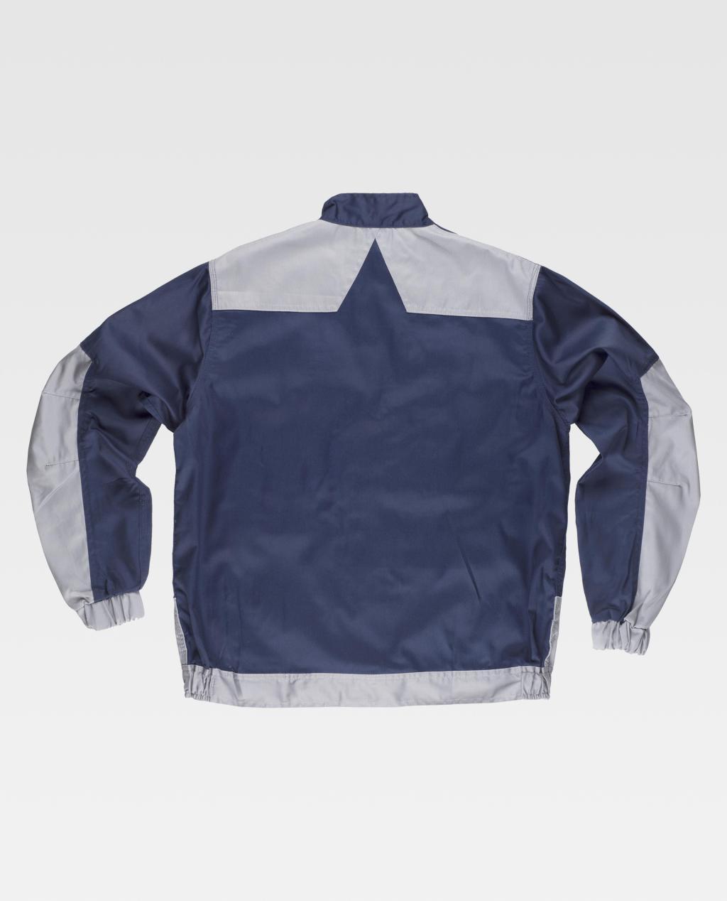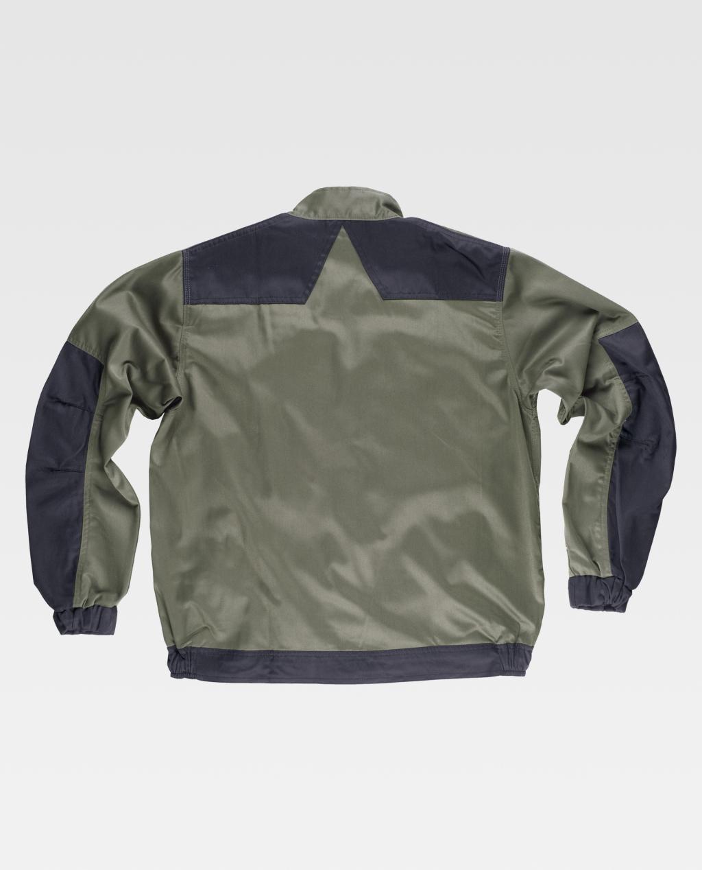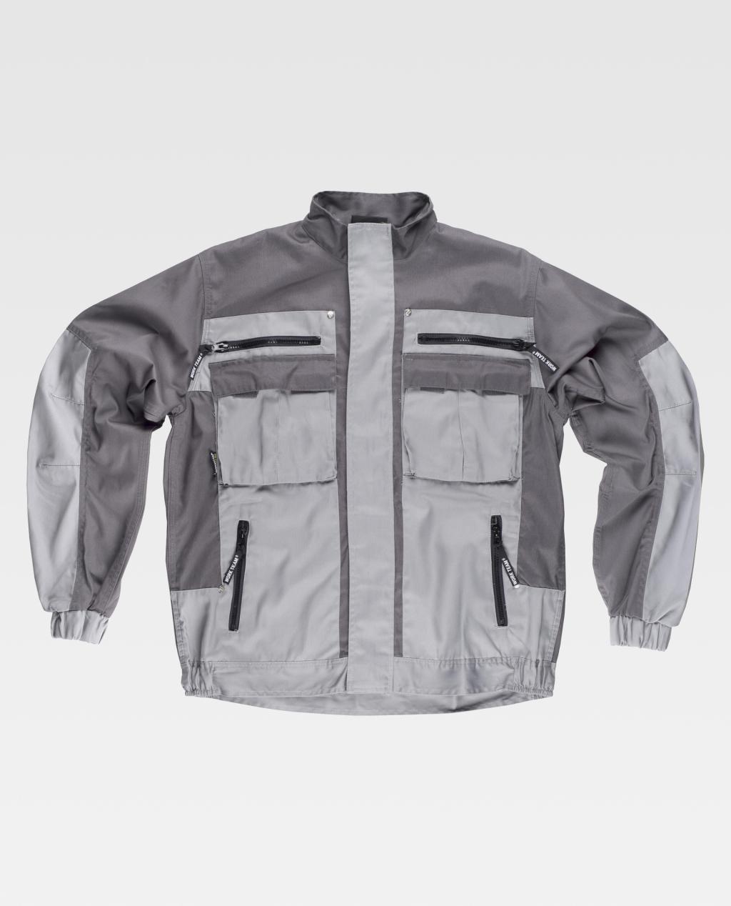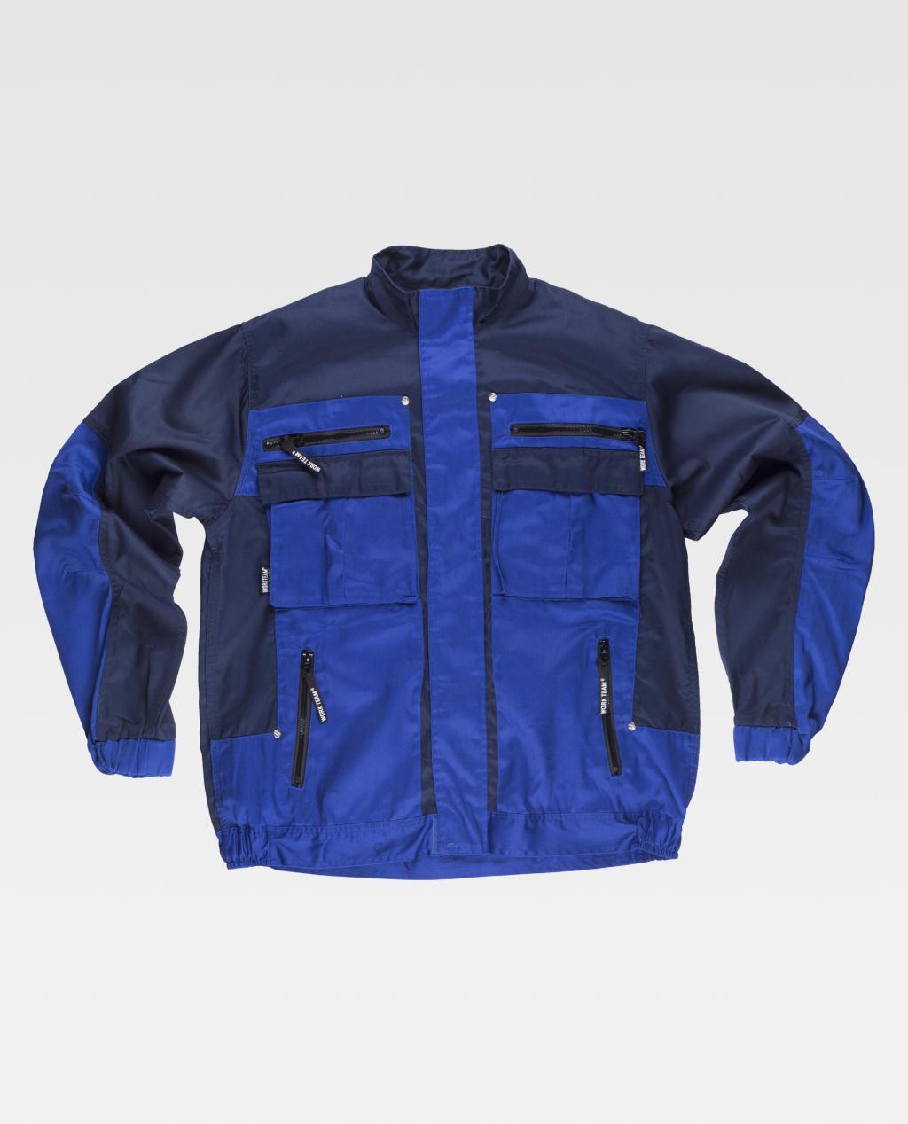 Blusão combinado com costura tripla e corpete nas costas. Gola alta e fecho de correr de náilon oculto por aba com velcro. Dois bolsos no peito interiores com fecho de correr e dois bolsos duplos com fole e lapela de velcro. Dois bolsos laterais interiores com fecho de correr. Mangas combinadas. Punho com elástico. Elástico nos laterais da cintura.