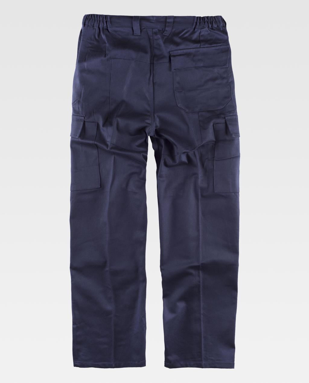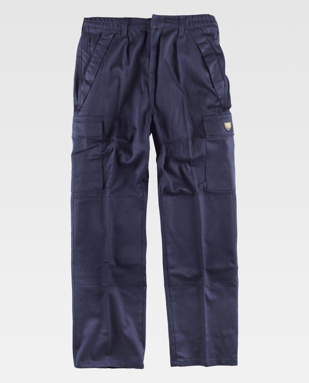 Calça ignífuga de algodão com dois bolsos de abertura inclinada nos costados com lapela de seguridade. Dois bolsos cargo laterais com lapela de velcro. Um bolso traseiro de chapa com lapela de presilha oculta. Joelheiras e assento reforçados. Elástico na cintura. Passadores. Fecho de presilha oculta e braguilha de fecho de correr de metal.