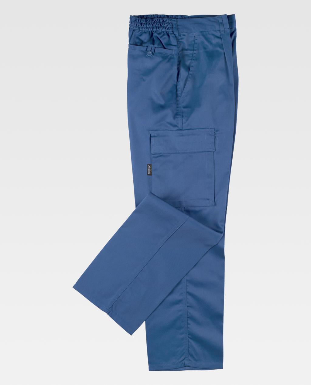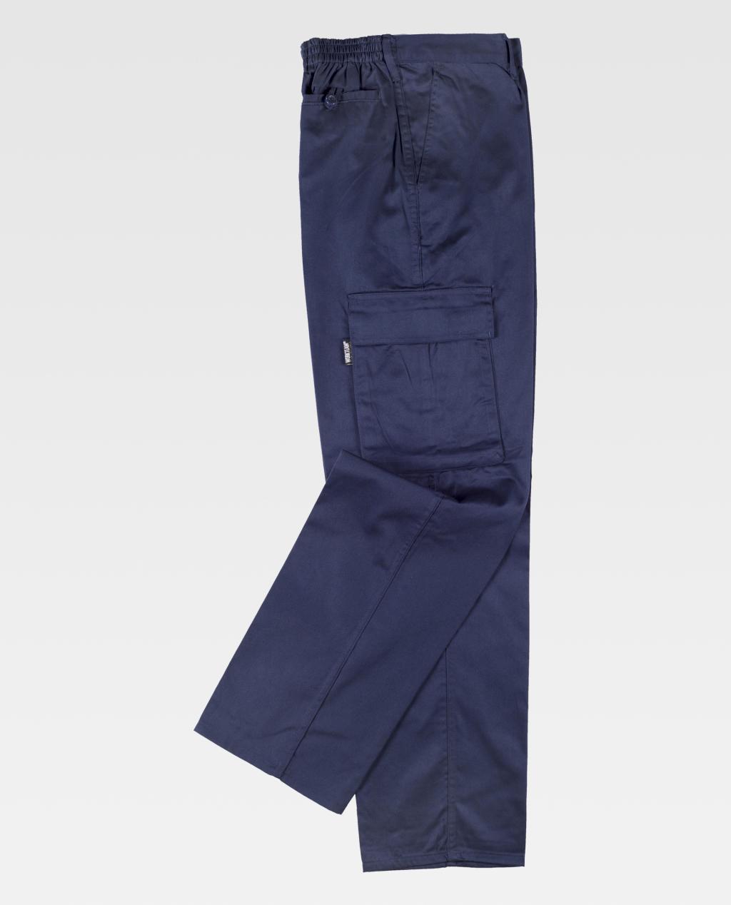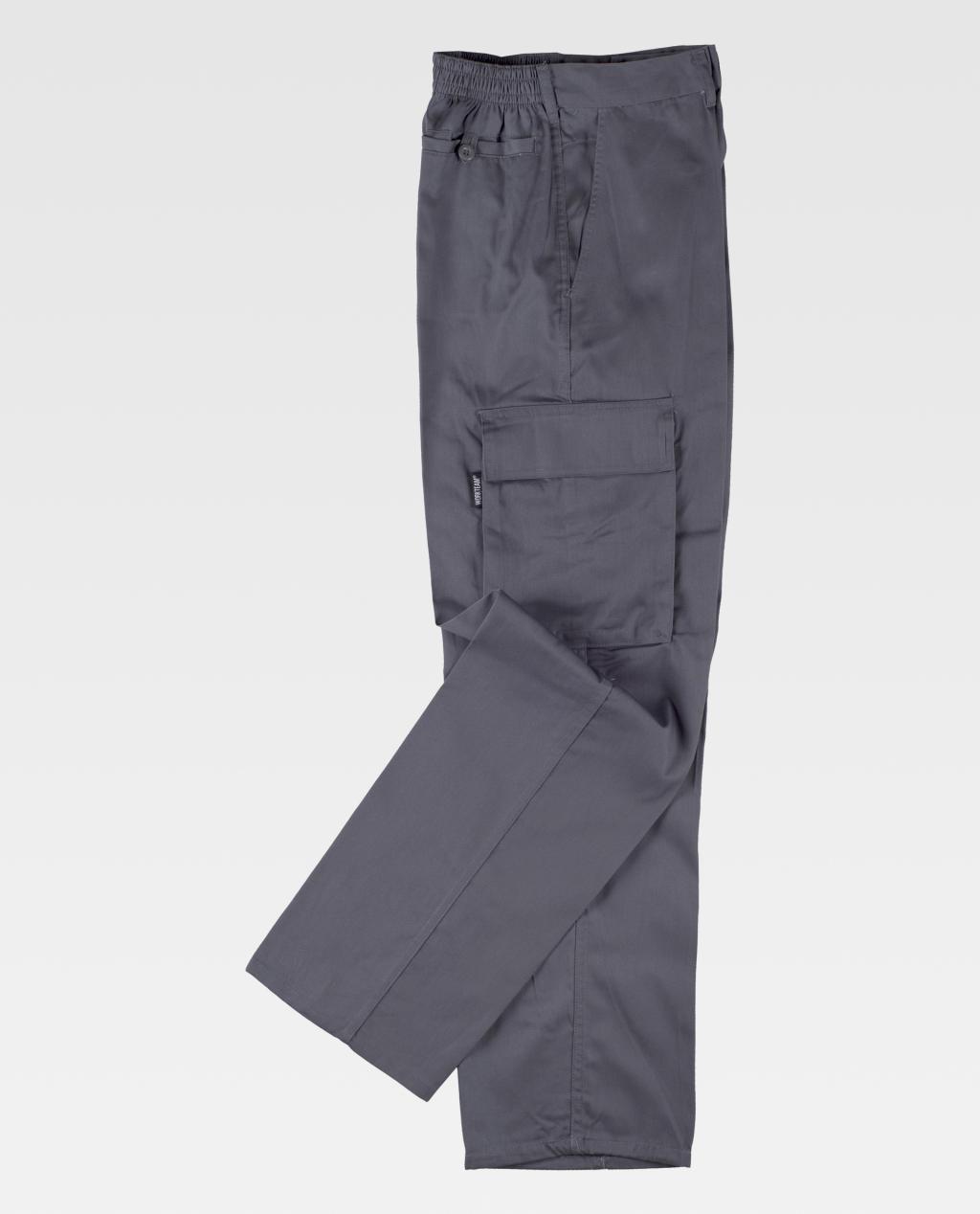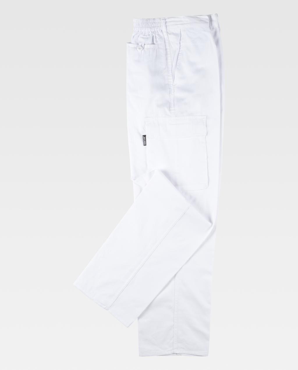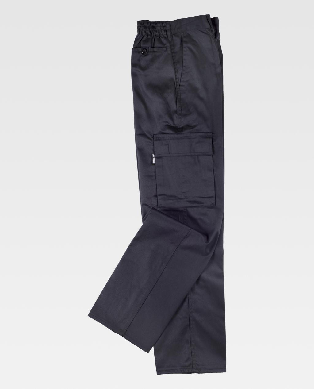 Calça direita com dois bolsos de abertura inclinada na cintura, dois bolsos de carga laterais com lapela e fecho de velcro. Um bolso traseiro semi-embutido com fecho de botão. Elástico na cintura. Passadores. Fecho de botão e braguilha com fecho de correr.