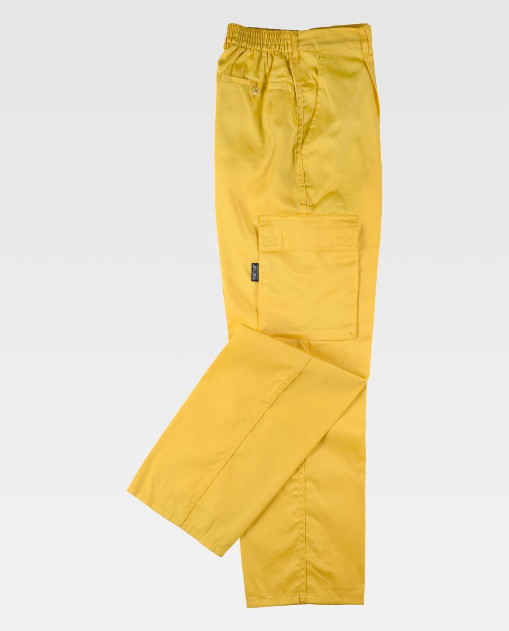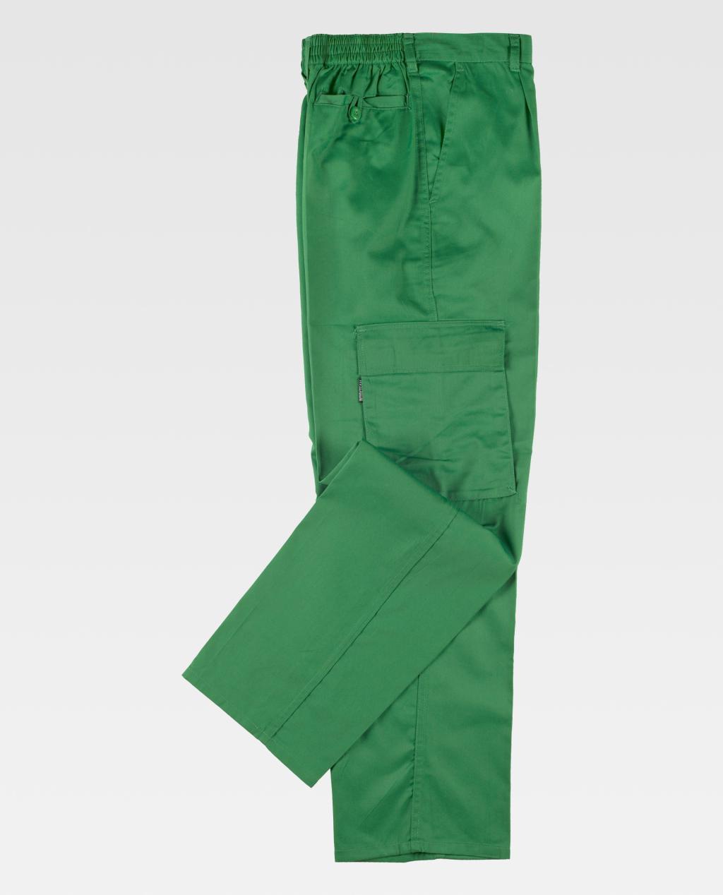 Calça direita com dois bolsos de abertura inclinada na cintura, dois bolsos de carga laterais com lapela e fecho de velcro. Um bolso traseiro semi-embutido com fecho de botão. Elástico na cintura. Passadores. Fecho de botão e braguilha com fecho de correr.