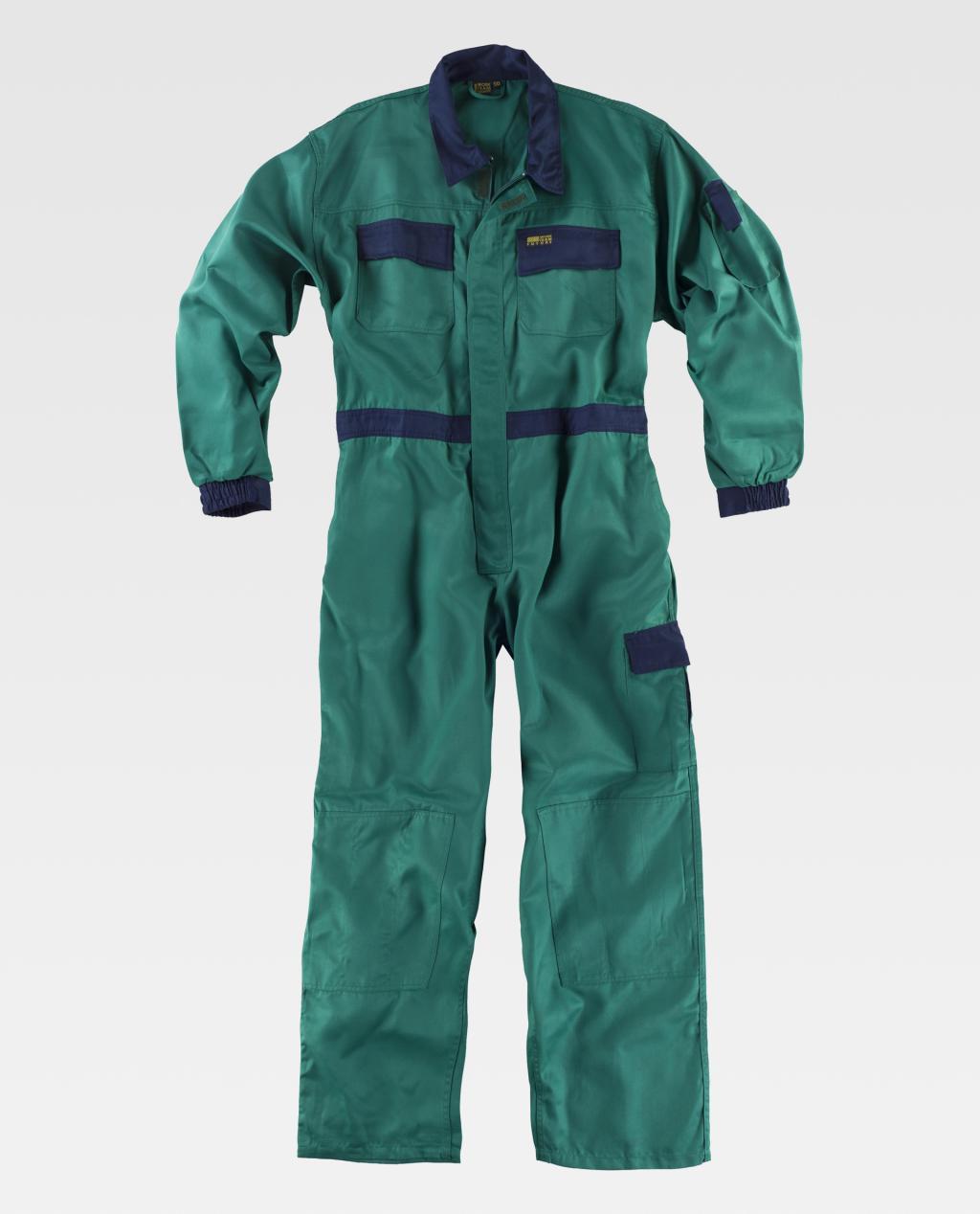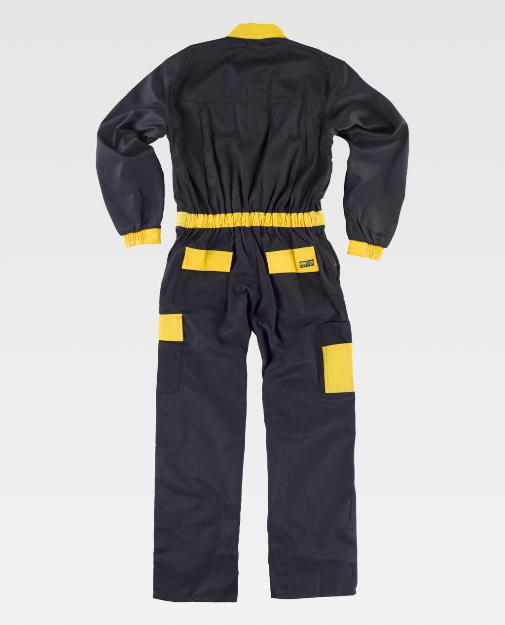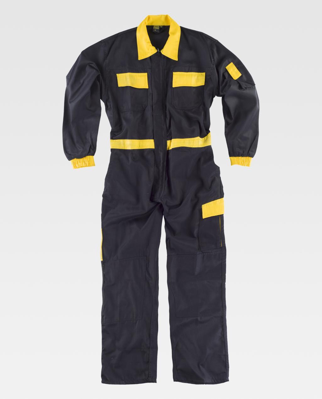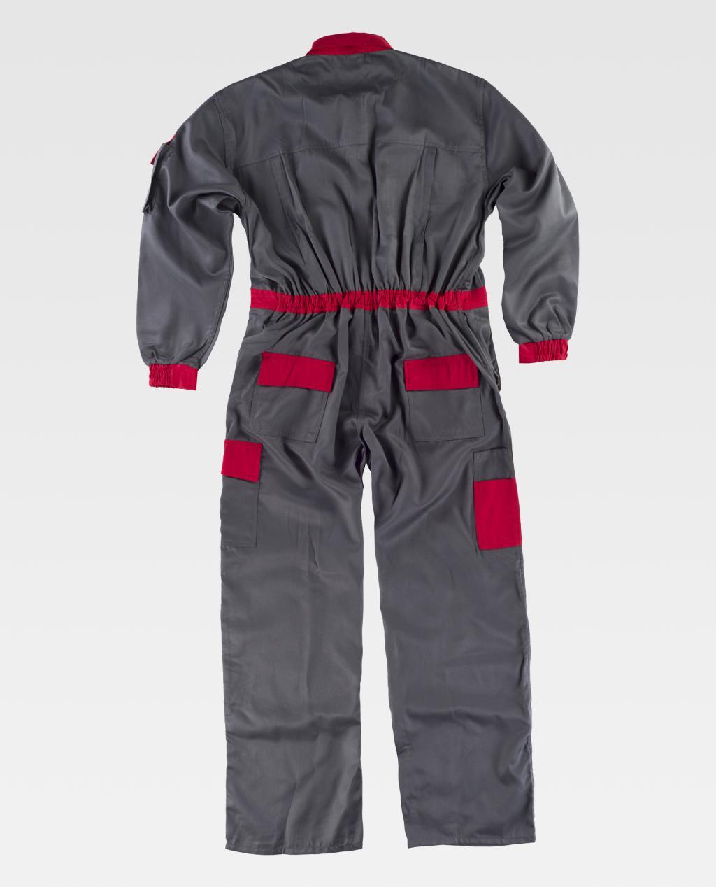 Fato macaco com corpetes e peças combinadas. Gola tipo camiseiro e fecho de correr de náilon de puxador duplo oculto por aba com velcro. Dois bolsos no peito de diferente tamanho com lapela de velcro, dois bolsos de chapa de abertura inclinada e abertura de acesso no interior nos costados, um bolso cargo lateral com fole central e com lapela de velcro. Dois bolsos traseiros de chapa com lapela de velcro e um bolso de espátula dupla. Punho com elástico. Costas com dobras. Cinta com elástico nas costas.