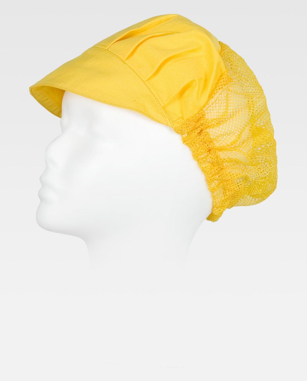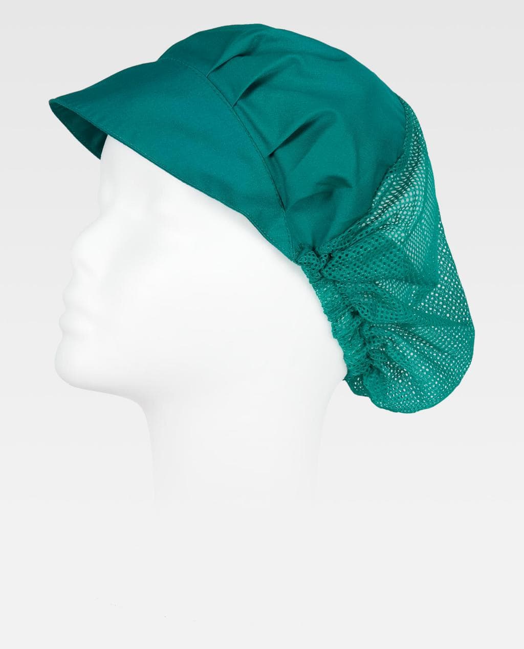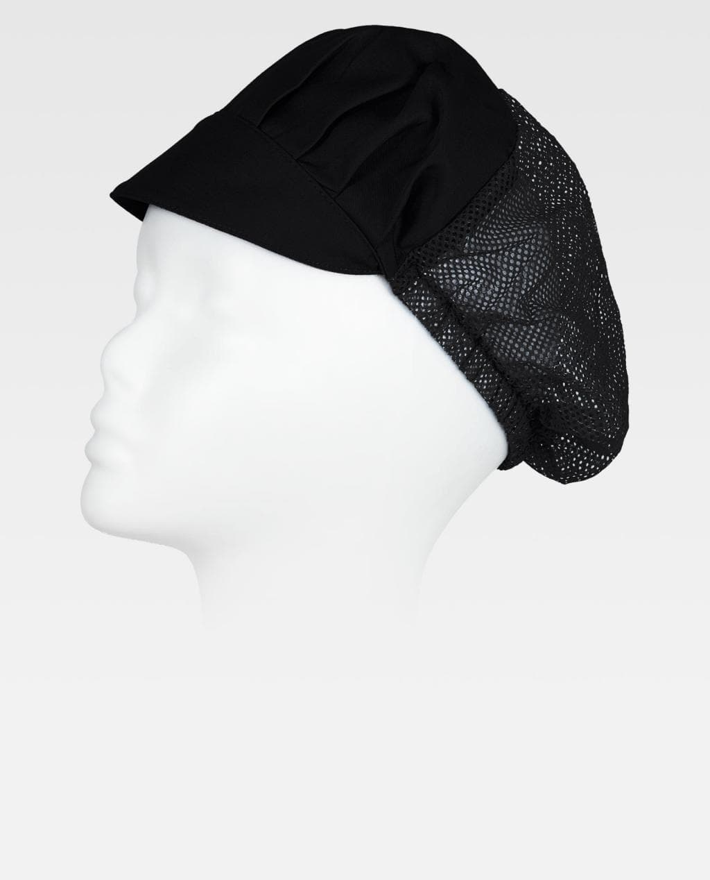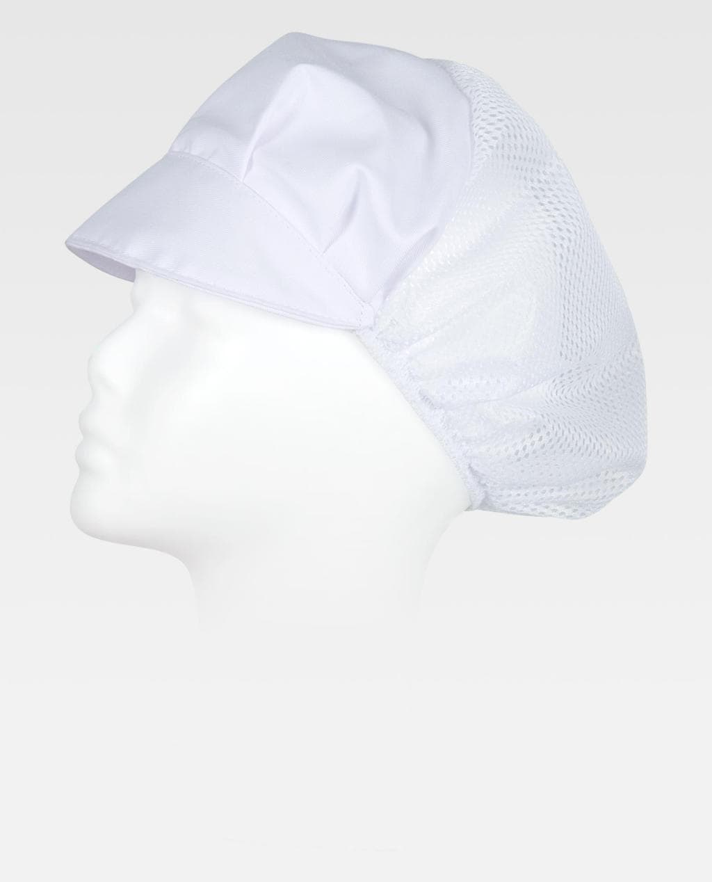 Touca de cozinha apanha cabelo com viseira. Dobras na parte da frente e rede transpirável com elástico na parte posterior. Adaptável, ideal para alimentação.