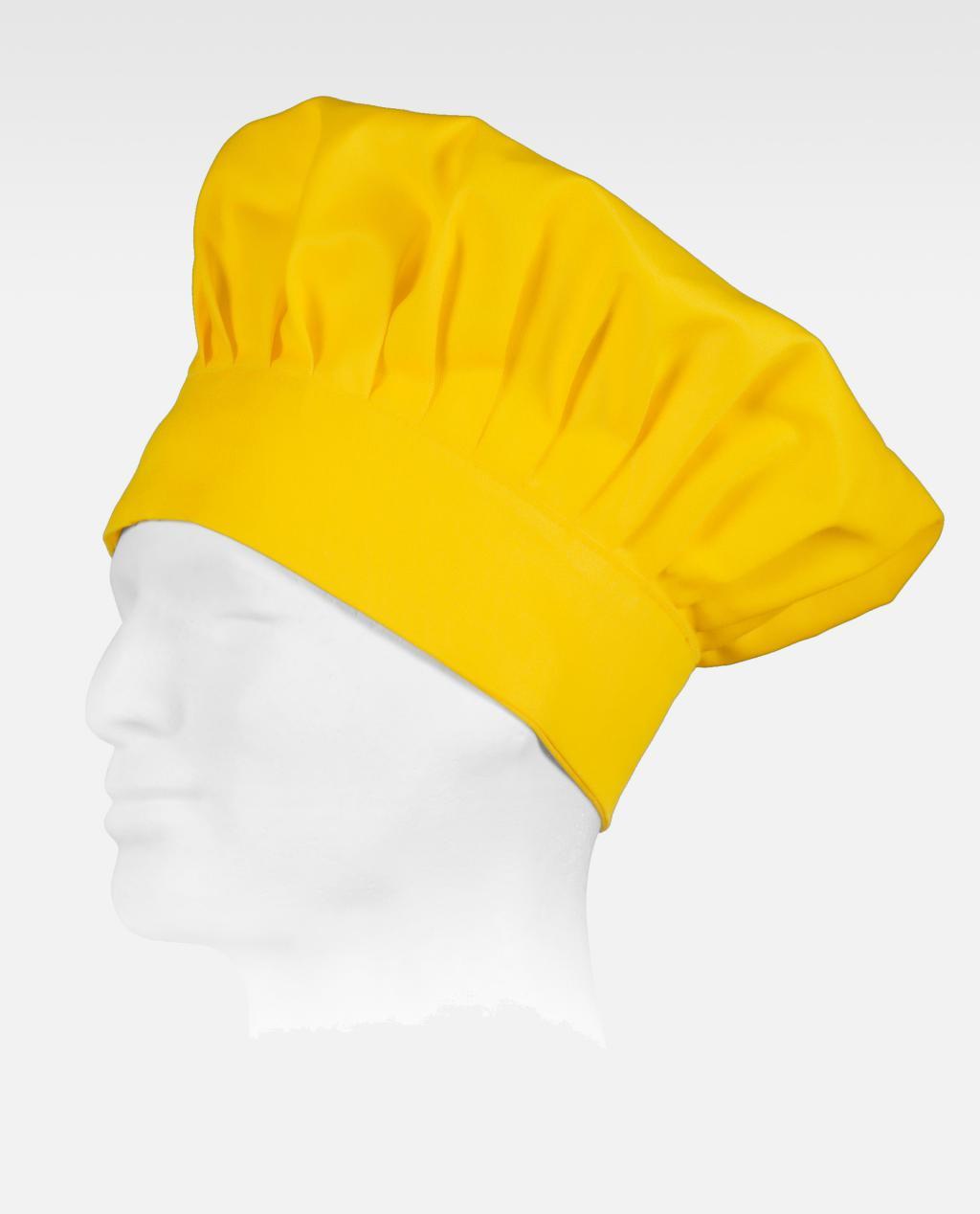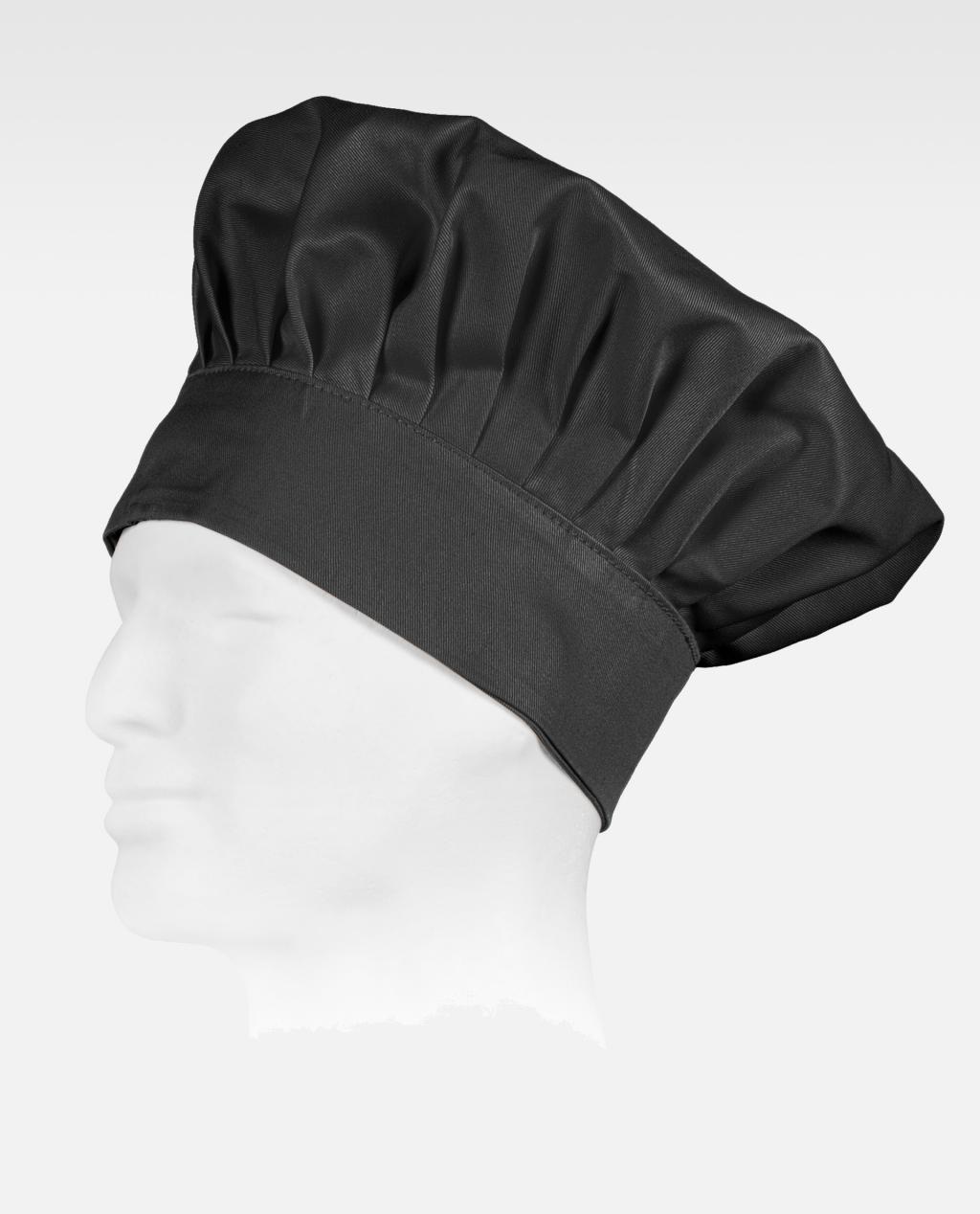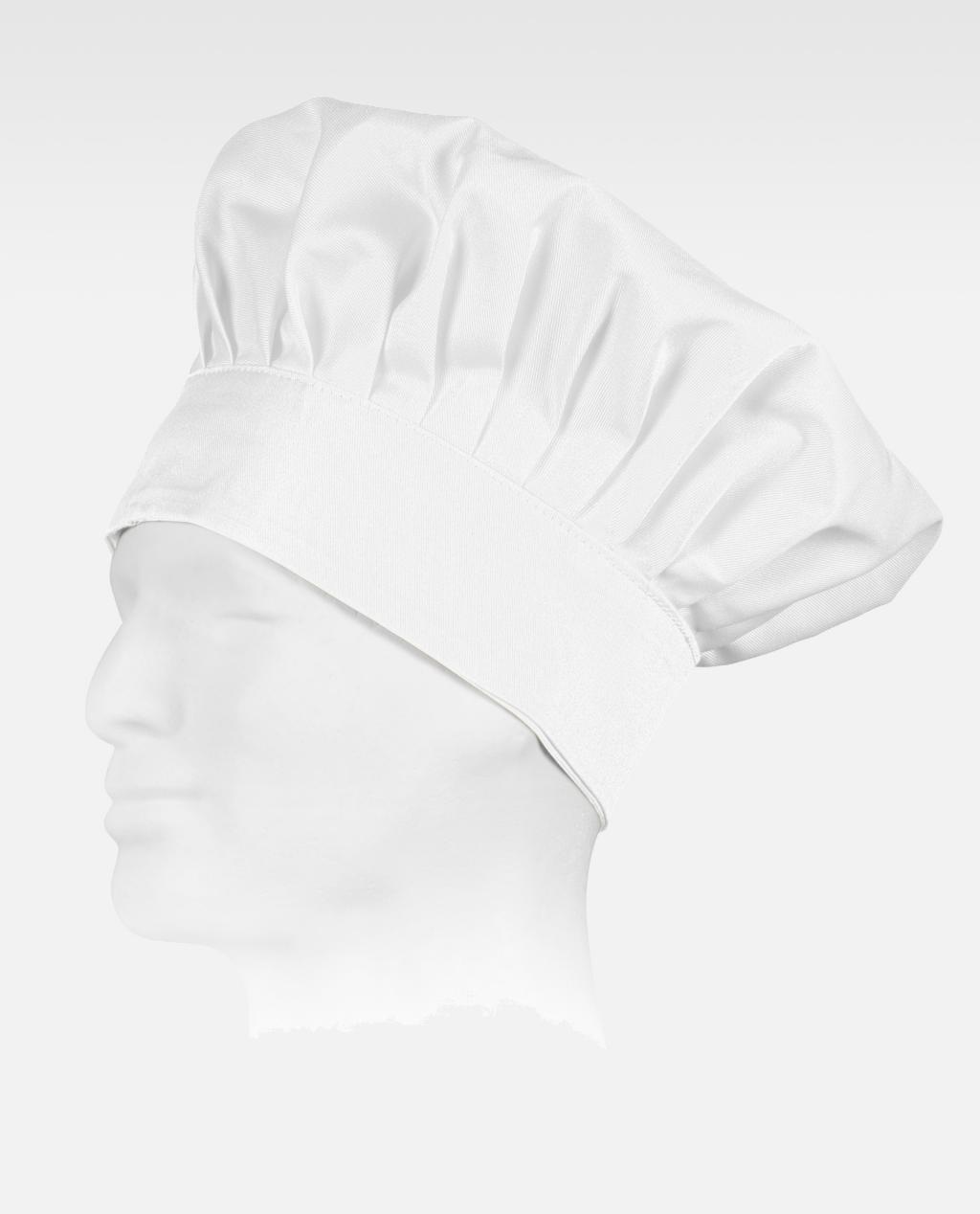 Gorro francês de cozinha estilo cogumelo. Dobras na parte superior e ajuste com velcro na parte posterior para uma melhor regulação