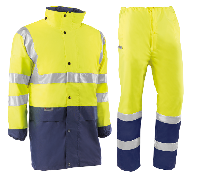 - Faixas refletoras de 3M® ScotchliteTM. Fecho de correr frontal e botões de pressão. Dois bolsos frontais com aba e um no interior. Punho elástico. Capuz fixo oculto e botões de pressão. Calças com cintura com cordão e bolsos.