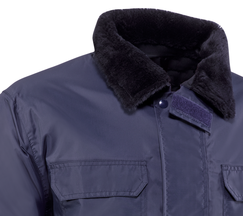 - Fecho de correr dianteiro com aba e botões de pressão. Dispõe de dois bolsos com aba e fecho em velcro situado à altura do peito. A gola de tecido “mutón” é ajustável através de uma tira de velcro. No interior e à altura da cintura dispõe de uma banda de material de malha elástica. As mangas dispõem de um punho elástico interior em malha.