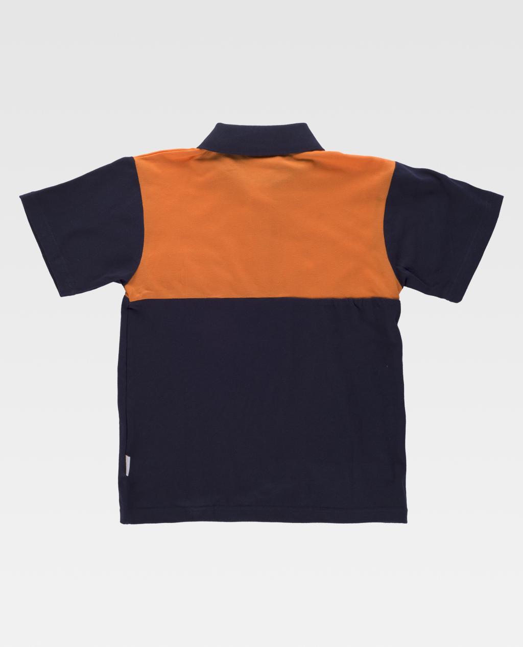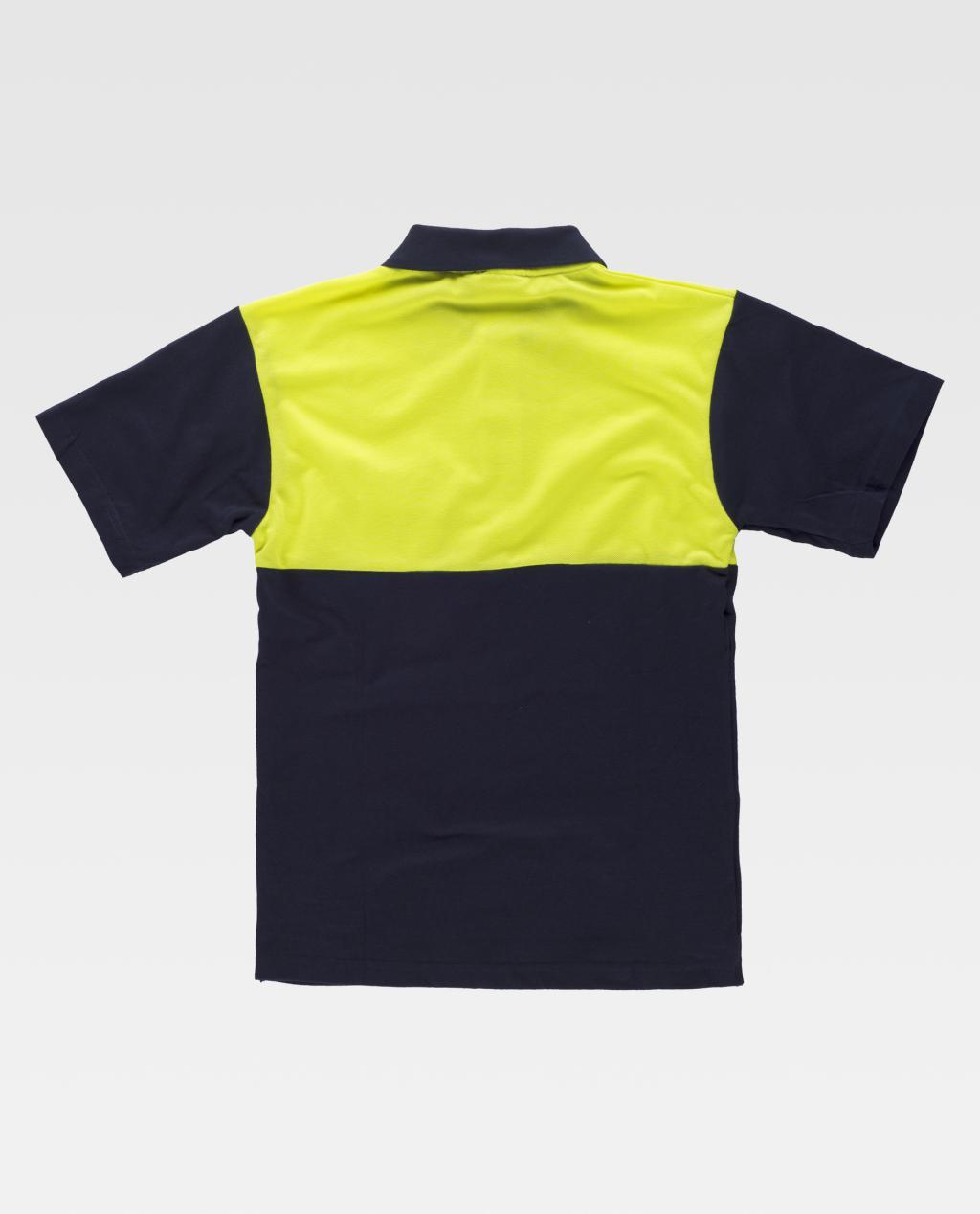 Pólo combinado de manga curta em pique de algodão. Parte superior de alta visibilidade. Gola clássica com carcela de três botões e abrange nas costuras interiores. Bolso semi-embutido no peito. Tecido fresco e poroso que permite uma ventilação adequada. Gola em ponto de canelado.