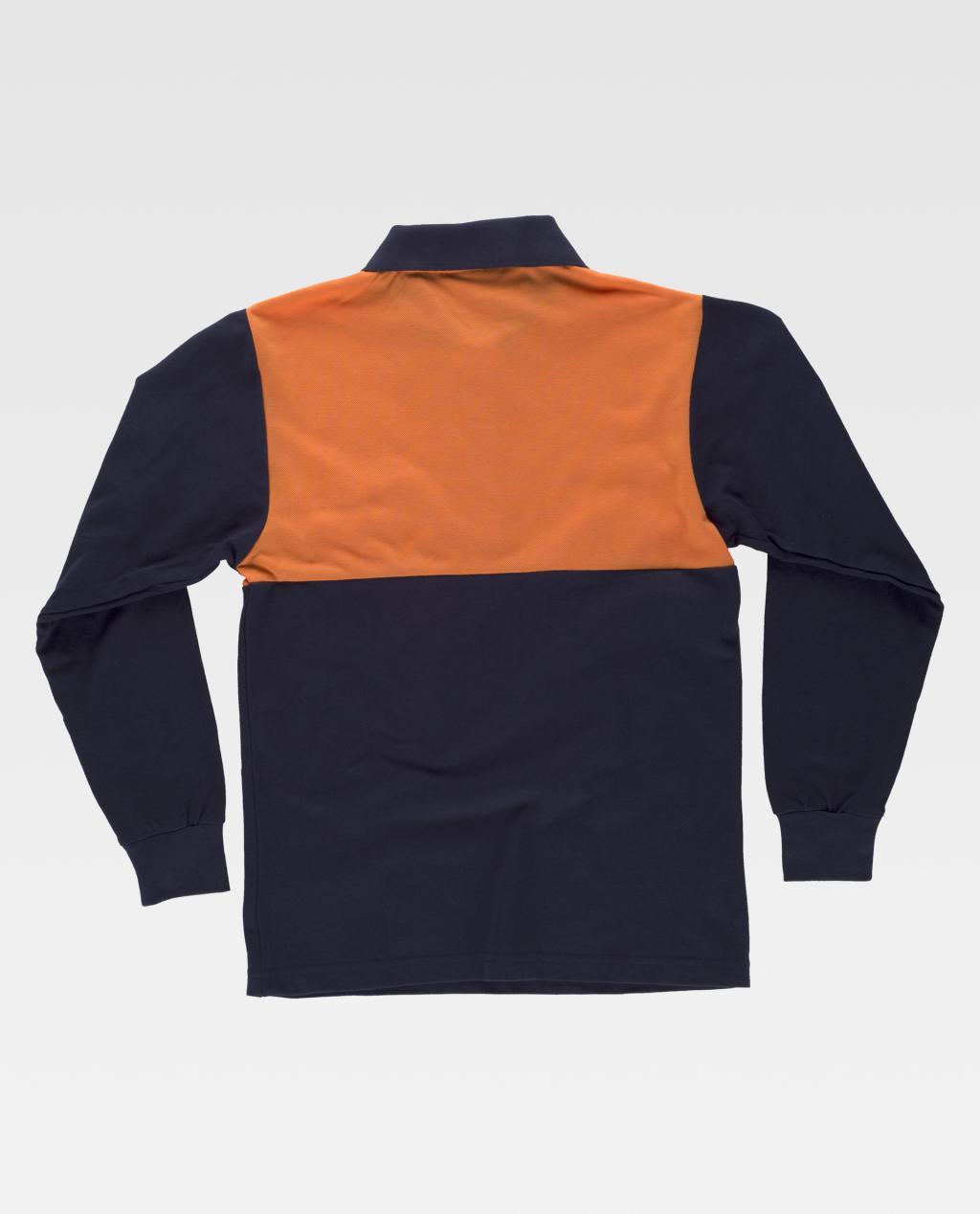 Pólo combinado de manga comprida em tecido pique de algodão. Parte superior de alta visibilidade. Gola clássica com carcela de três botões e abranges nas costuras interiores. Um bolso semi-embutido no peito. Tecido fresco e poroso que permite uma ventilação adequada. Gola e punhos em ponto de canelado.