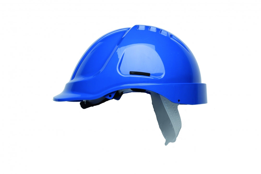 Capacete ventilado com armação em ABS (muito leve) e arnês em nylon com 8 pontos de fixação, mais banda anti-suor.